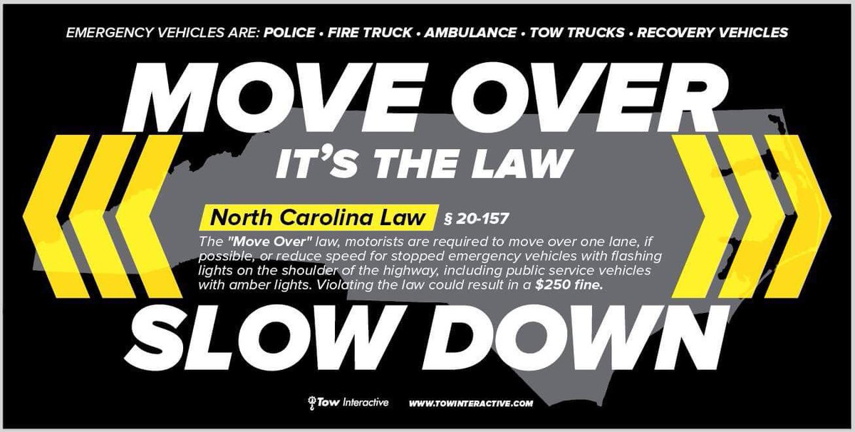 North Carolina law requires drivers to give wide berth to emergency responders including electric utility crews. As an additional reminder, the public should also keep clear of work zones while on foot. The utility crew work zone can include numerous hazards with the potential for serious injury.